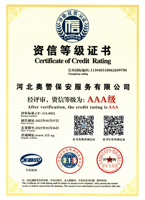 奧警邯鄲保安公司是一家民營保安服務(wù)公司,工商行政管理局登記注冊,獲取相關(guān)等級資質(zhì)證書,是一家大型的保安連鎖服務(wù)公司。